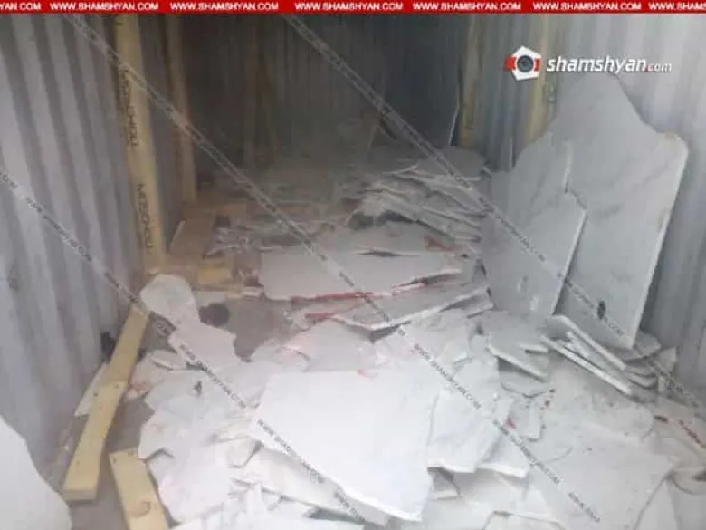 Մեկնած օպերատիվ խումբը պարզել է, որ նույն օրը, ժամը 12.00-ին, Լեոյի փողոցի 1 հասցեում գտնվող բազմաբնակարան շենքի ստորգետնյա ավտոկայանատեղիի մուտքի մոտ, կոնտեյներից մարմարե սալիկներ բեռնաթափելու ժամանակ սալիկները շրջվել են, ինչի հետեւանքով նշված անձինք ստացել են վնասվածքներ: