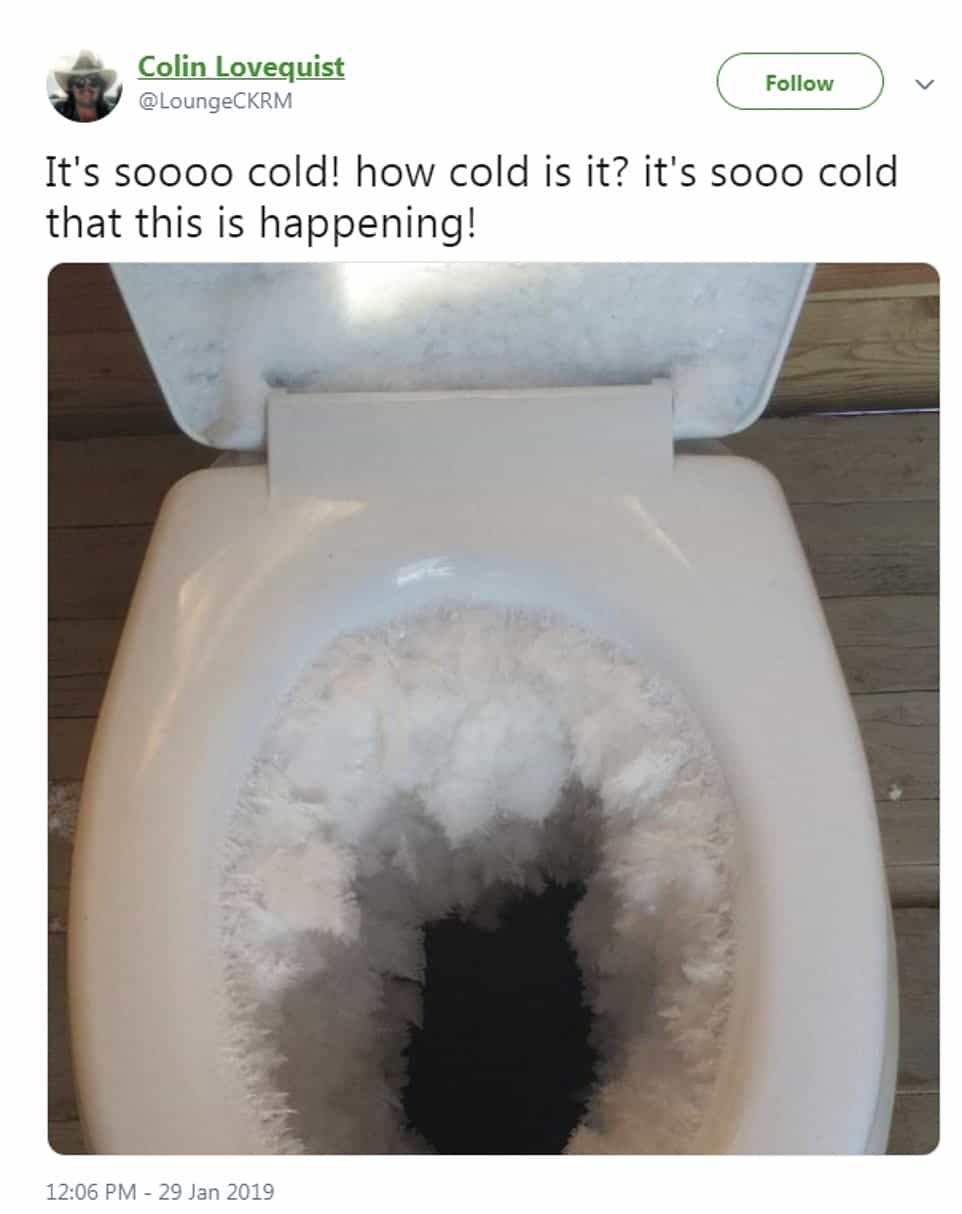Խոսքն ամբողջովին սառցապատ զուգարանակոնքերի, ցրտից սառած ու ինքնուրույն «կանգնող» հագուստի, դրսում քարացած թաց մազերի ու այլ ուշագրավ երևույթների մասին է: