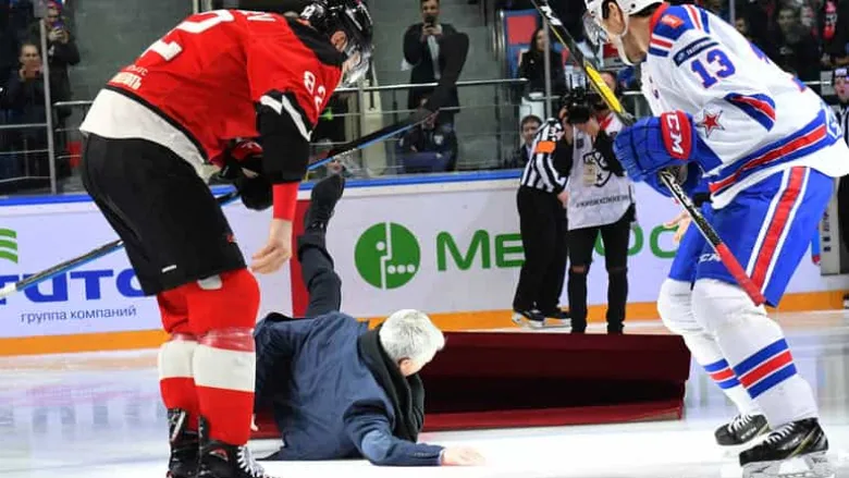 Որպեսզի հյուրն իրեն լավ զգա, հատուկ նրա համար գորգ էր փռվել սառույցին: Սակայն դա էլ նրան չօգնեց: Մոուրինյոն սայթաքեց եւ ընկավ անմիջապես տափօղակը նետելուց հետո: Համացանցը միանգամից արձագանքեց. Դեռ երբեք Մոուրինյոն այսքան ցածր չէր ընկել: Ֆուտբոլիստը լավ հոկեիստ չի դառնա, գրում են օգտատերերը: