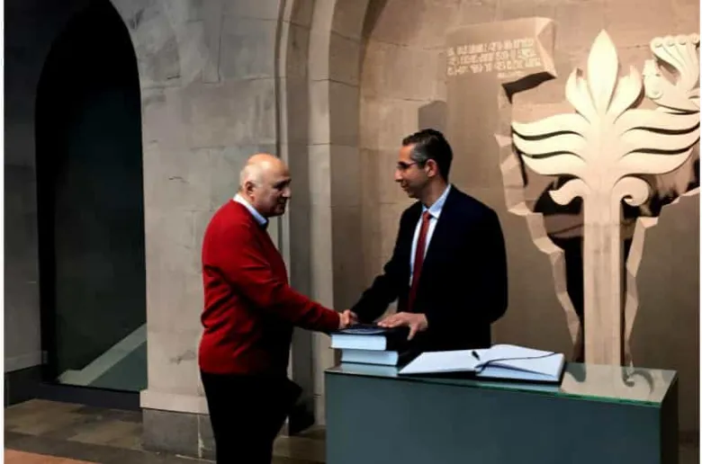 ՀՑԹԻ հիմնադրամի տնօրեն Հարություն Մարությանը բարձրաստիճան հյուրին հանձնել է Մխիթարյան Միաբանության Միաբան Հայր Վահան ծայրագույն վարդապետ Օհանյանի և ավստրալահայ Արա Քեթիպյանի կազմած 1890-1922 թթ․ ամերիկյան մամուլում հրատարակված Հայոց ցեղասպանության մասին հոդվածների երկու հատոր ՝ «The Armenian Genocide: Prelude and Aftermath. As reported in the U.S. Press – The New York Times»։