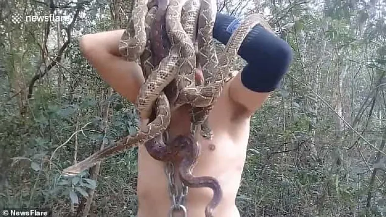 Ինչպես նշում է Daily Mail պարբերականը, տեսանյութը նկարահանվել է փետրվարի 6-ին: Տեսանյութում երևում է, թե ինչպես է «Օձերի նինձա» մականվամբ հայտնի ակտիվիստը զգուշորեն բռնում թունավոր սողունների գլուխներից: Այնուհետև նա բարձրանում է մեխերով պատված հարթակի վրա և բերանում տեղավորում բոլոր 6 օձերի պոչերը: Գործողությունը 15 վայրկյան է տևում, որից հետո տղամարդն իջնում է հարթակից:
