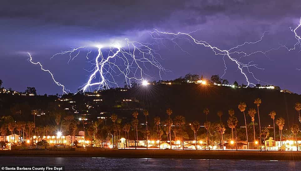 Ինչպես նշում է Daily Mail-ը, Ազգային օդերևութաբանական ծառայությունը Կալիֆոռնիայի ափերին հինգ րոպեի ընթացքում ֆիքսել է կայծակի 1489 հարված: Մինչդեռ նահանգի հարավային ափին հինգ ժամում կայծակի 2200 հարված է գրանցվել: