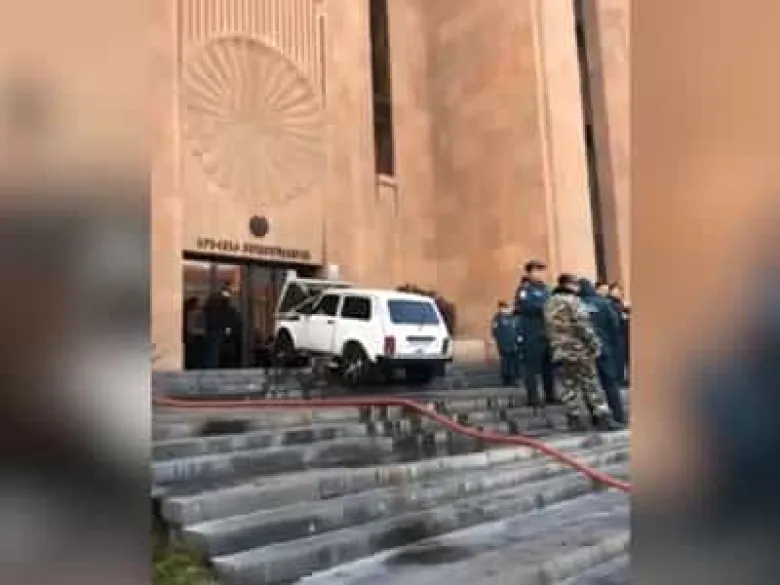 Հիշեցնենք, որ երեկ «Նիվա» մակնիշի մեքենան բարձրացել է քաղաքապետարանի գլխավոր մուտքի աստիճաններով ու տեւական ժամանակ կայանել դռների դիմաց։