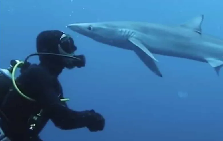 Օվկիանոսագետ Քեյվին Շմիդթը սուզվել էր Քեյփթաունի ափերին մոտ տարածքում: Նրան հանդիպել էր «հետաքրքրասեր» կապույտ շնաձուկը: Կենդանին մոտեցել էր տղամարդուն և «համբուրել» նրա գլխի հատվածը: