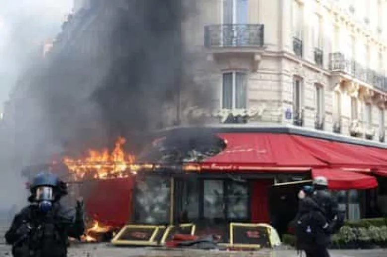 Մասնավորապես, Փարիզում ցուցարարները հարձակվել են Ելիսեյան այգիներում մի քանի էլիտար խանութների , ինչպես նաեւ պայթուցիկ նյութով շշեր են նետել հանրահայտ Le Fouquet's ռեստորանի ուղղությամբ: Ռեստորանի պատուհաններին տեղադրված պաշտպանիչ վահանակները չեն օգնել, եւ արդյունքում կրակը վնասել է վերանդան: Այրվել է նաեւ Le Deauville ռեստորանը: