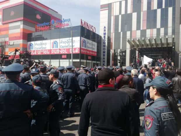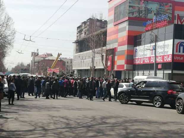 «Սպայկա»-ի աշխատակիցները փակել են Տիգրան Մեծի պողոտան. Քաշքշուկ տեղի ունեցավ նրանց եւ ոստիկանների միջեւ (ֆոտո)