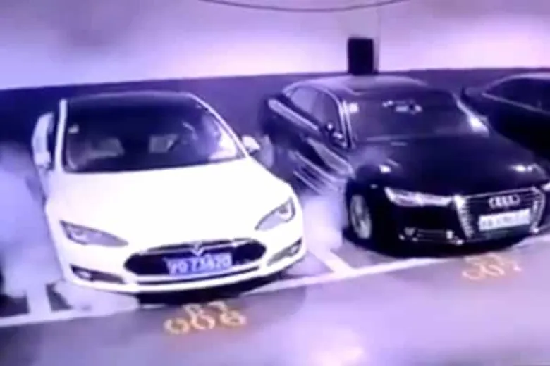 Համացանցում տեսանյութ է հայտնվել, թե ինչպես է Չինաստանի Շանհայ քաղաքի ավտոկայանատեղիներից մեկում պայթում և բոցավառվում Tesla մակնիշի ավտոմեքենան: