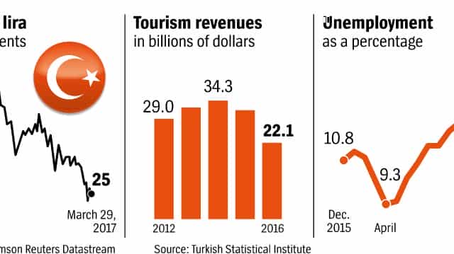 Ըստ պարբերականի` միայն երկրի հզորացման մասին մշտապես բացականչող Թուրքիայի նախագահ Ռեջեփ Թայիփ Էրդողանը կարծես «այլ աշխարհում է ապրում»: Իրականում, Թուրքիայում հեղաշրջման փորձից հետո սկսված կադրային զտումներն ու տասնյակ հազարավոր ձերբակալությունները, քրդերի դեմ ռազմական գործողություններն ու քուրդ գրոհայինների կամ «Իսլամական պետություն» ահաբեկչական խմբավորման զինյալների կողմից իրականացված հարձակումներն ահռելի վնաս են հասցրել երկրի տնտեսությանը: