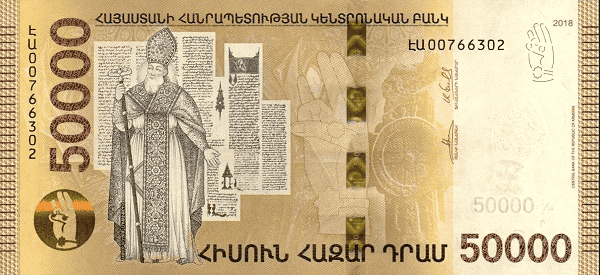 Այս տարի լավագույնների ցանկում է հայտնվել հայկական նոր 50 000 դրամանոց թղթադրամը, որի վրա պատկերված են Սուրբ Գրիգոր Լուսավորիչն ու Էջմիածինը: