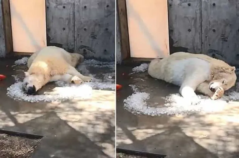 Ինչպես է սպիտակ արջը զովանում կենդանաբանական այգում (տեսանյութ)