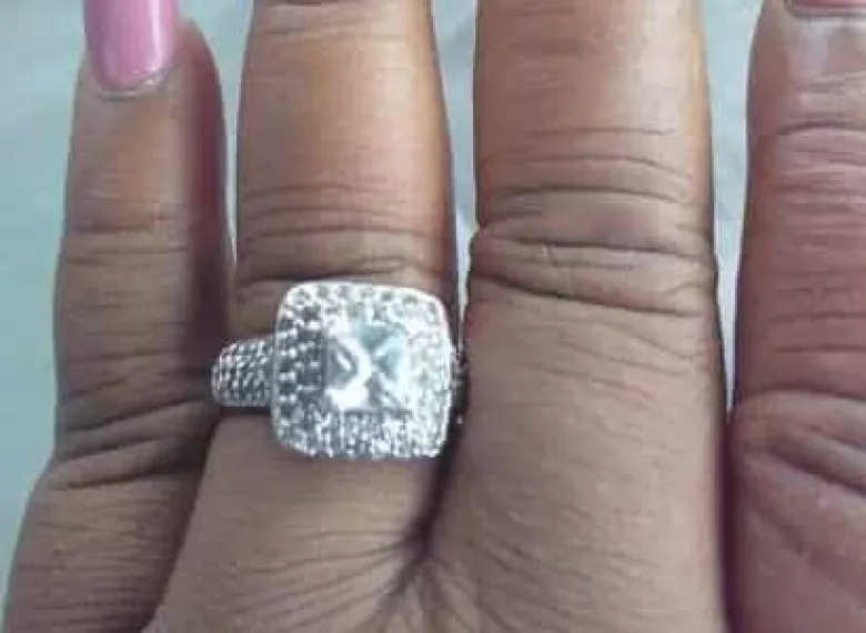 Աղջիկը հպարտությամբ հրապարկել է շքեղ ադամանդե մատանին: Նրա եղունգը կարծես «դուրս է եկել» մատից: