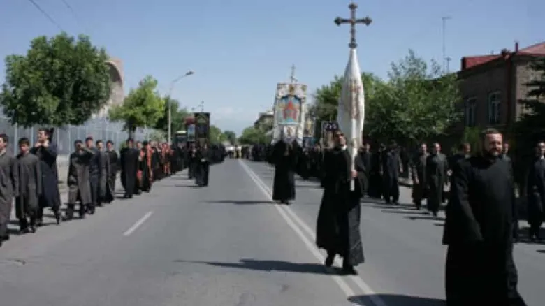 Տոնի առիթով առավոտյան Մայր Տաճարից եկեղեցականների հանդիսավոր թափորը Էջմիածնի Հայորդյաց տան սաների թմբուկների զարկերի ներքո առաջնորդվեց Սուրբ Գայանե վանք: Թափորը մինչեւ Ս. Գրիգոր Լուսավորչի կամար գլխավորեց Ն.Ս.Օ.Տ.Տ. Գարեգին Երկրորդ Ծայրագույն Պատրիարք եւ Ամենայն Հայոց Կաթողիկոսը՝ նահատակ սրբուհու մասունքն ամփոփող Աջով օրհնելով բարեպաշտ ժողովրդին: Այնուհետեւ Վեհափառ Հայրապետը մասունքակիր Աջը փոխանցեց Մայր Աթոռ Սուրբ Էջմիածնի լուսարարապետ Գերաշնորհ Տ. Հովնան եպիսկոպոս Հակոբյանին: