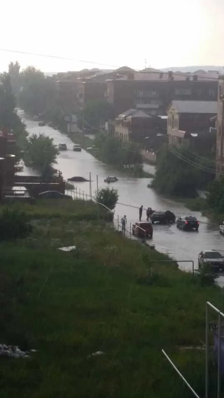 Գյումրիում հորդառատ անձրևի պատճառով ավտոմեքենաներն արգելափակվել են անձրևաջրերի մեջ