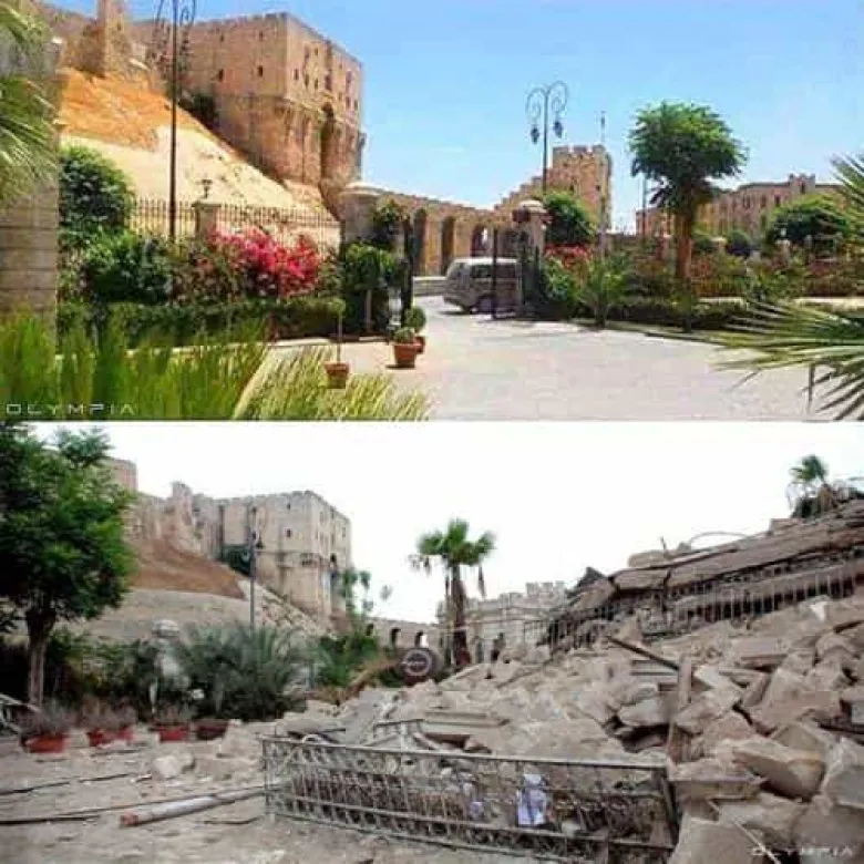 Քաղաքացիական պատերազմը Սիրիայի խոշոր քաղաք Հալեպը իսկական ավերակների է վերածել: Ռազմական գործողությունների հետեւանքով զոհվեցին հազարավոր մարդիկ, ոչնչացվեցին ոչ միայն բնակելի տներ, այլ նաեւ ճարտարապետական կառույցներ: Պատերազմի ավերիչ ուժի մասին կարելի է դատել այս լուսանկարներից: