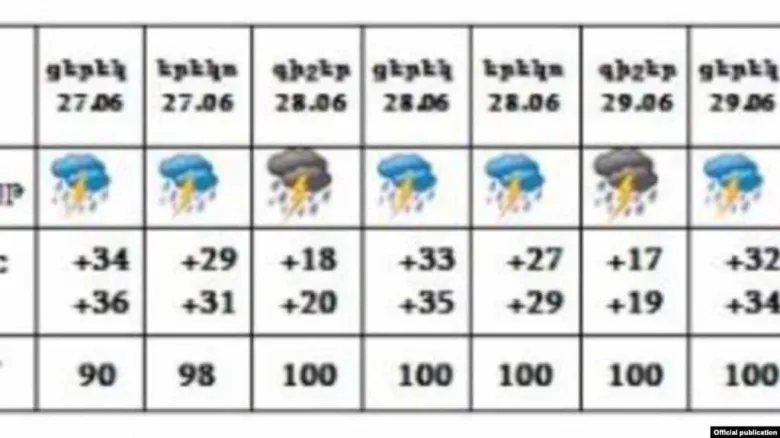 Երևանում հունիսի 28-30-ին, հուլիսի 1-ի գիշերը սպասվում է անձրև և ամպրոպ, ամպրոպի ժամանակ նաև քամու ուժգնացում մինչև 15-20մ/վրկ արագությամբ: Հուլիսի 1-ի ցերեկը, 2-ին սպասվում է առանց տեղումների եղանակ: