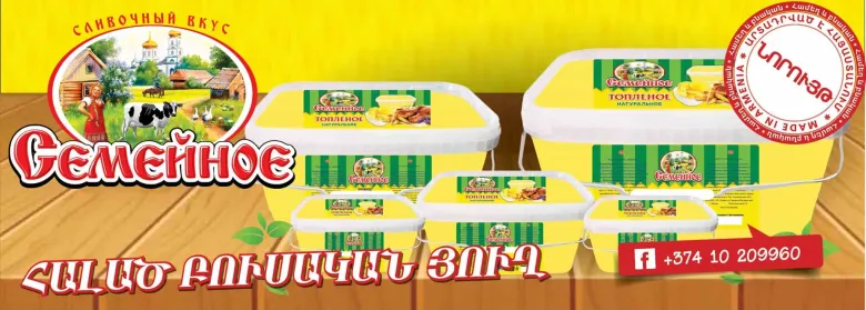 Հայ սպառողն արդեն ծանոթ է «Семейное» ապրանքանիշի բարձորակ տեսականուն՝ սփրեդներ, պանիր՝ պատրաստված չանախի տեխնոլոգիայով և նորույթ «Семейное» ապրանքանիշից. հալած բուսական յուղ՝ ընտանիքին մի սեղանի շուրջ մեկտեղելու համար: «Семейное»-ի բուսական յուղերի խառնուրդը 99%-ով յուղ է պարունակում: Ընկերության կողմից առաջարկվող այս արտադրանքն աչքի է ընկնում նաև իր մատչելիությամբ. «Մեր ընկերության կողմից ներկայացված բուսական յուղերի խառնուրդը նորույթ է հայկական շուկայում: Տարբեր յուղերի միակցությունից մենք ստացել ենք բարձորակ պրոդուկտ, որ հեշտացնենք հայ կանանց գործը խոհանոցում: Հալած բուսական յուղերով պատրաստված ճաշատեսակները դուր կգան ձեր ողջ ընտանիքին: Դրանք դյուրամարս են, թեթև և այնքան հաճելի քիմքին»,- նշում է «Семейное» ապրանքանիշի Որակի վերահսկողության բաժնի ղեկավար Հասմիկ Թարզյանը:
