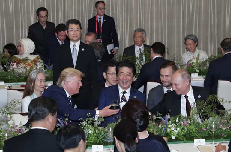 ԱՄՆ նախագահ Դոնալդ Թրամփը Ճապոնիայի Օսակա քաղաքում G20-ի առաջնորդների պատվին կազմակերպված ընթրիքի ժամանակ բաժակ բաժակի է խփել իր ռուս գործընկեր Վլադիմիր Պուտինի հետ և կատակել Սաուդյան Արաբիայի թագաժառանգ արքայազնի հետ, գրում է Daily Mail-ը: