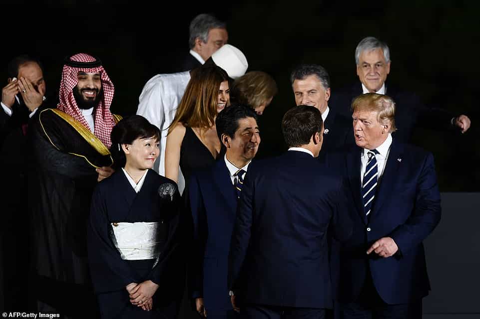 ԱՄՆ-ի նախագահը նաև ողջունել է Սաուդյան Արաբիայի գահաժառանգ արքայազն Մուհամադ բին Սալման ալ Սաուդին, նրա հետ կատակներ փոխանակել և լուսանկարվել վերջինիս հետ: