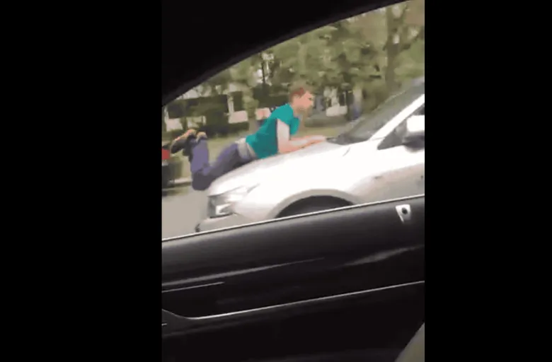Համացանցում տարածվել է տեսանյութ, որտեղ երևում է, թե ինչպես է Սանկտ Պետերբուրգում մի աղջիկ մեքենայի թափքի վրա քարշ տալիս իր անծանոթ, սակայն համառ երկրպագուին: