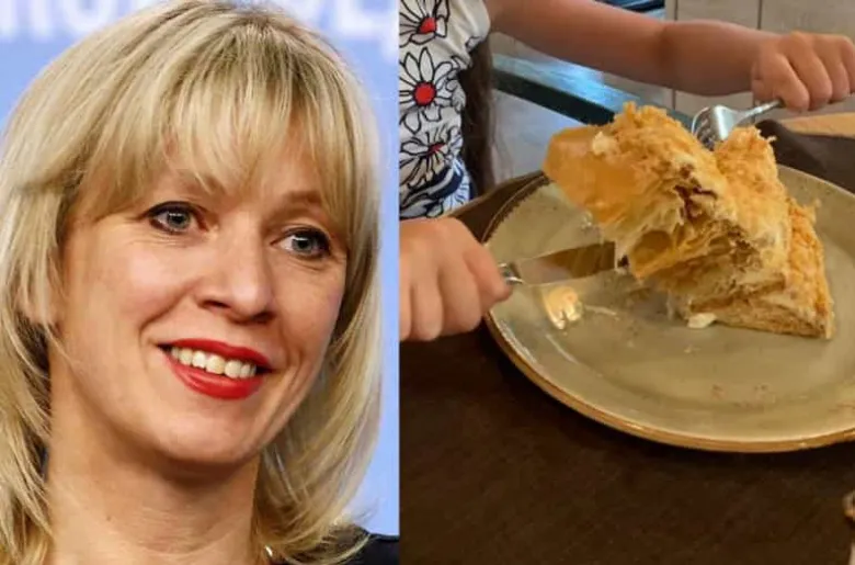 Զախարովան իր էջում գրառմանը կից լուսանկար է հրապարակել, որում միլֆեյ կոչվող աղանդերի մեծ կտոր է պատկերված:
