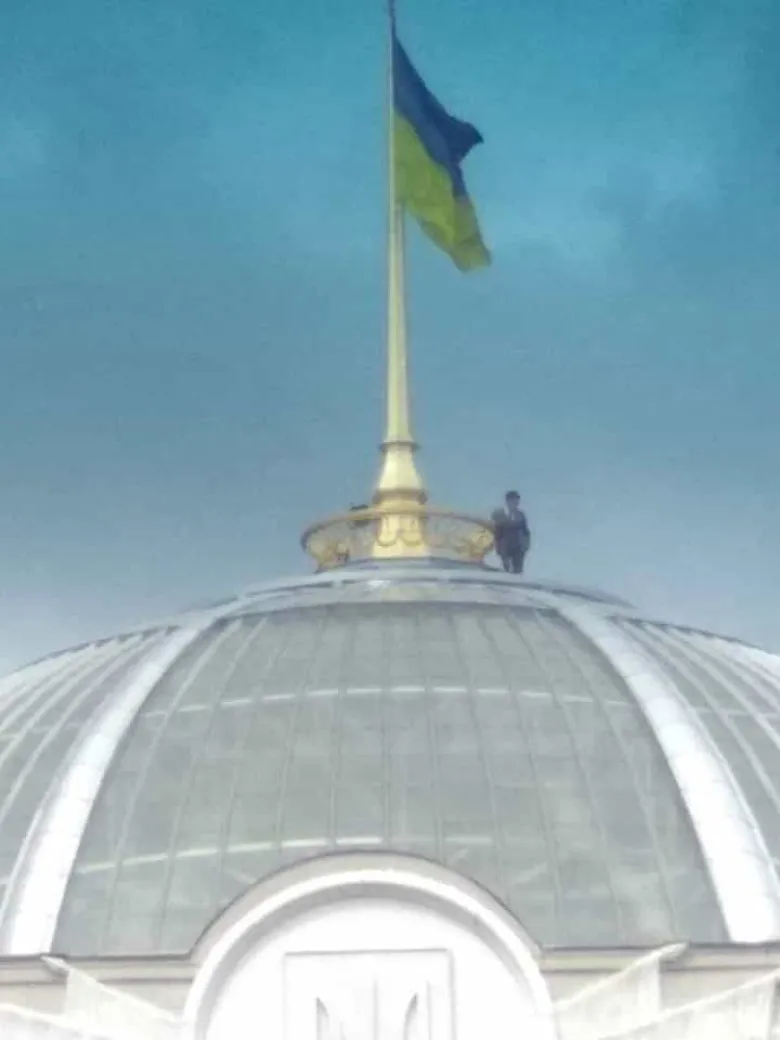 Ֆեյսբուքյան օգտատեր Միխայիլ Գոլուբն իր էջում լուսանկարներ է տեղադրել, որոնցում մի տղամարդ՝ կոստյումով, գտնվում է Վերին Ռադայի շենքի տանիքում, հաղորդում է Lenta.ru-ն: