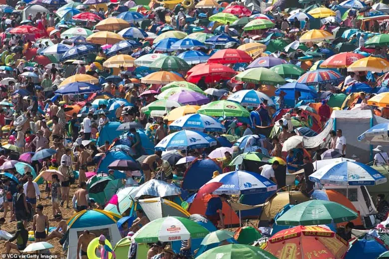 Չինական հայտնի լողափը հանգստյան օրերին «հեղեղվել» է տասնյակ հազարավոր այցելուներով (լուսանկարներ)