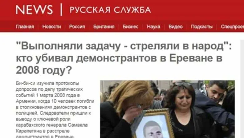 «Գոլոս Արմենիի» թերթն անդրադարձել է BBC-ի աղմկահարույց հրապարակմանը՝ «Ո՞վ է կրակել ցուցարարներին Երևանում 2008 թվականին․ քննությունը մատնանշում է Ղարաբաղի ջոկատին» վերնագրով։ Ռուսական թերթը նշում է, որ հոդվածի գլխավոր նպատակը հայ հասարակությունը պառակտելն է կեղծ վկայություններ տարածելու միջոցով։