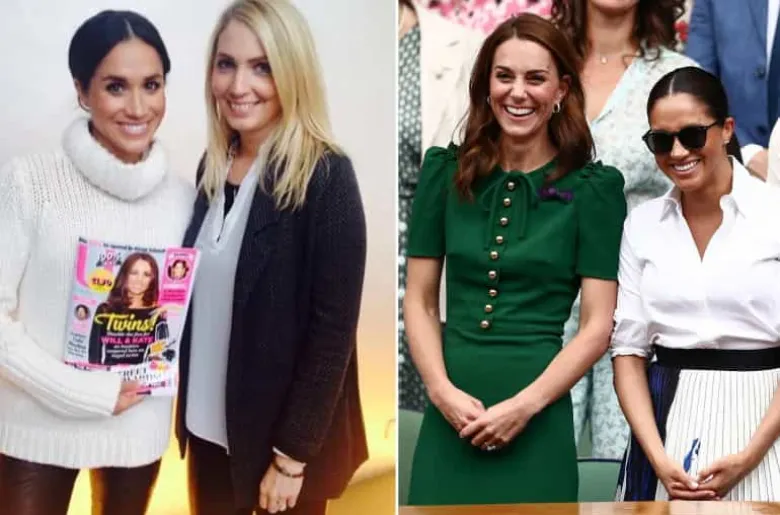 Լուսանկարում Մեգան Մարքլը Քեմբրիջի դքսուհու նկարով ամսագիրը ձեռքին ժպտում է տեսախցիկին: Նրա կողքին կանգնած է ամսագրի գլխավոր խմբագրի տեղակալը: