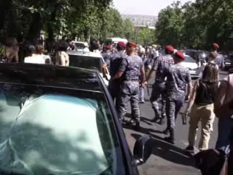 Միաժամանակ Բաղրամյան 26-ի դիմաց բողոքի ակցիա էր ընթանում ընդդեմ Ամուլսարի հանքի շահագործման: Բողոքի ակցիայի մասնակիցներն ավելի ուշ ցանկացել են հանրային քննարկում անցկացնել ԱԺ այգում, սակայն նրանց դա թույլ չեն տվել: Քաշքշոց է սկսվել ակցիայի մասնակիցների եւ ոստիկանների միջեւ, կարմիր բերետավորները բռնի ուժ կիրառելով բերման են ենթարկել ցուցարարներին, այդ թվում բնապահպաններ Անի Խաչատրյանին, Գեղամ Ադյանին: Քաշքշոցի ընթացքում գետնին է տապալվել քաղակտիվիստ, իրավապաշտպան Զարուհի Հովհաննիսյանը: