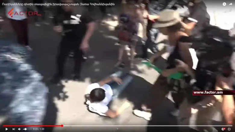 Այսօր Նիկոլ Փաշինյանի ասֆալտին փռելու խոստումն իրականություն դարձավ։ Ինձ ուղիղ իմաստով փռեցին ասֆալտին, ու վրայովս քայլելով փորձում էին բիրտ ուժ կիրառելով բերման ենթարկել աղջկան։