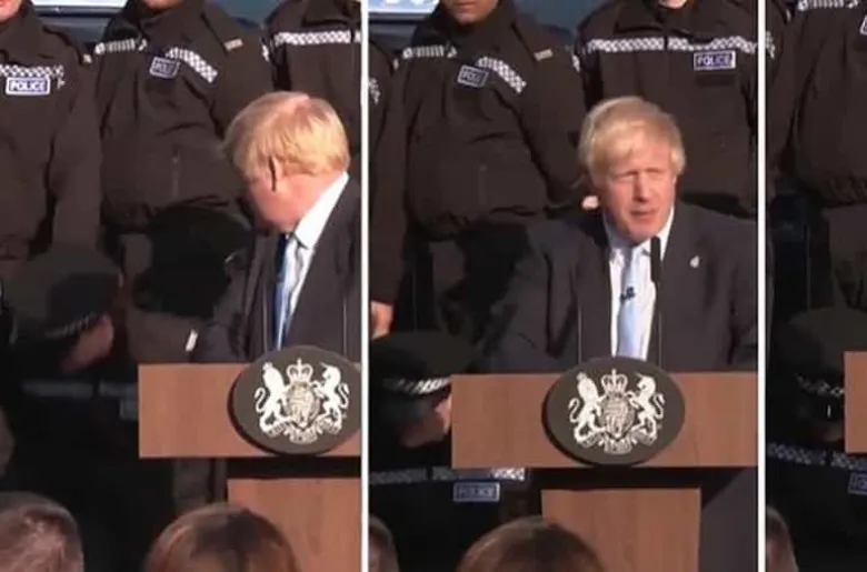 Բորիս Ջոնսոնը մի պահ հետ է շրջվում, ապա վերադառնում է իր ելույթին: