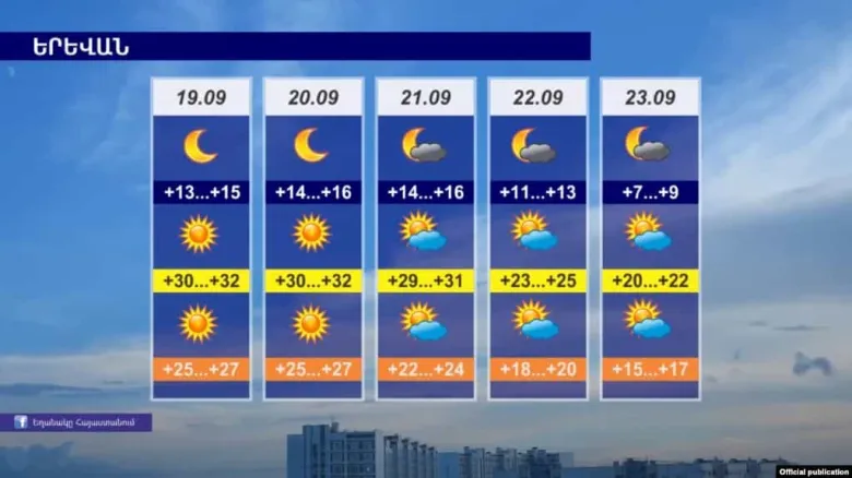 Արտակարգ իրավիճակների նախարարության հաղորդագրության համաձայն՝ օդի ջերմաստիճանը սեպտեմբերի 22-23-ն աստիճանաբար կնվազի 9-11 աստիճանով։