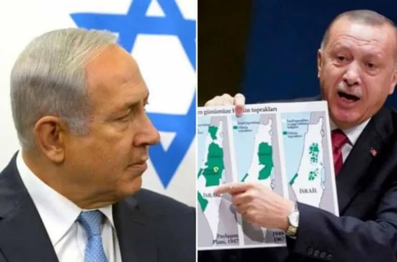 ՄԱԿ-ի ԳԱ նստաշրջանում Էդողանը, ցուցադրելով Իսրայելի քարտեզը և ներկաների ուշադրությունը հրավիրելով 1948 և 1960 թվականներին երկրի սահմանների վրա, Իսրայելին մեղադրել է էքսպանսիոնիստական նպատակների, ինչպես նաև Գազայի հատվածում արաբների նկատմամբ հոլոքոստ իրականացնելու համար: