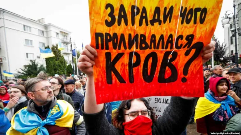 Կիևի կենտրոնում հազարավոր մարդիկ ցույցի են դուրս եկել՝ պահանջելով նախագահ Զելենսկուց զիջումների չգնալ և ծնկի չգալ Ռուսաստանի հետ բանակցություններում: