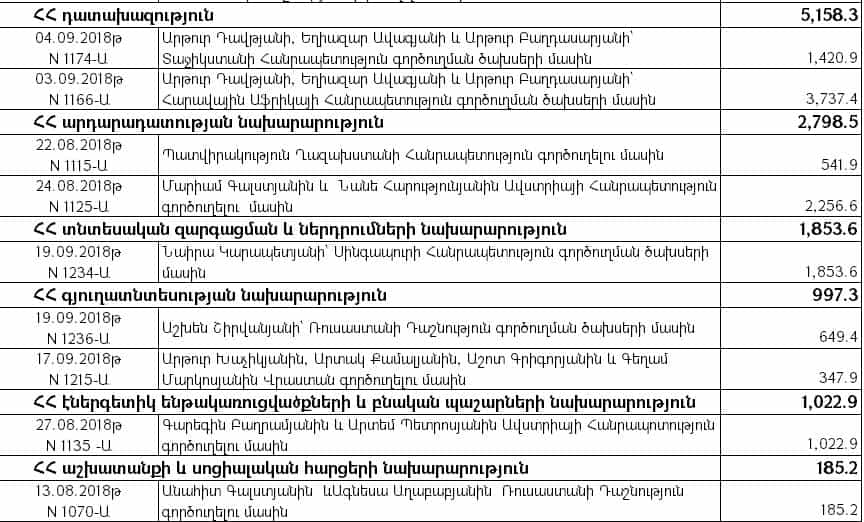 Կառավարության կազմի մի մասը միայն սեպտեմբերի գործուղումների համար ծախսել է ավելի քան 187 մլն դրամ