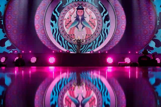 Հանրային հեռուստաընկերության ստեղծագործական խմբի որոշմամբ` այս տարվա բեմականացման ընթացքում լեդային էկրանների վրա կներկայացվի հայկական զարդարվեստն ու թռչնապատկերները` ժամանակակից դրսեւորմամբ, հին զարդանախշները` նորաձեւ գունային լուծումներով` խորհրդանշելով Արծվիկի անվան նշանակությունն ու մրցութային երգի վերնագիրը, որը թարգմանաբար նշանակում է «ճախրիր ինձ հետ»:
