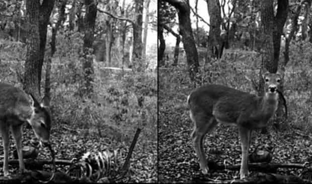 2015-ի հունվարի 5-ին տեսախցիկը ֆիքսել էր մի երիտասարդ եղջերուի, որը կանգնել էր կմախքի կողքին՝ բերանի մեջ մարդկային ոսկոր։ Հետո դա կրկնվել է, արդեն մեկ ուրիշ եղջերուի մասնակցությամբ։ Դա առաջին ֆիքսված դեպքն է, որ եղջերուն ուտում է մարդու դիակ, գրում է Journal of Forensic Sciences ամսագիրը։