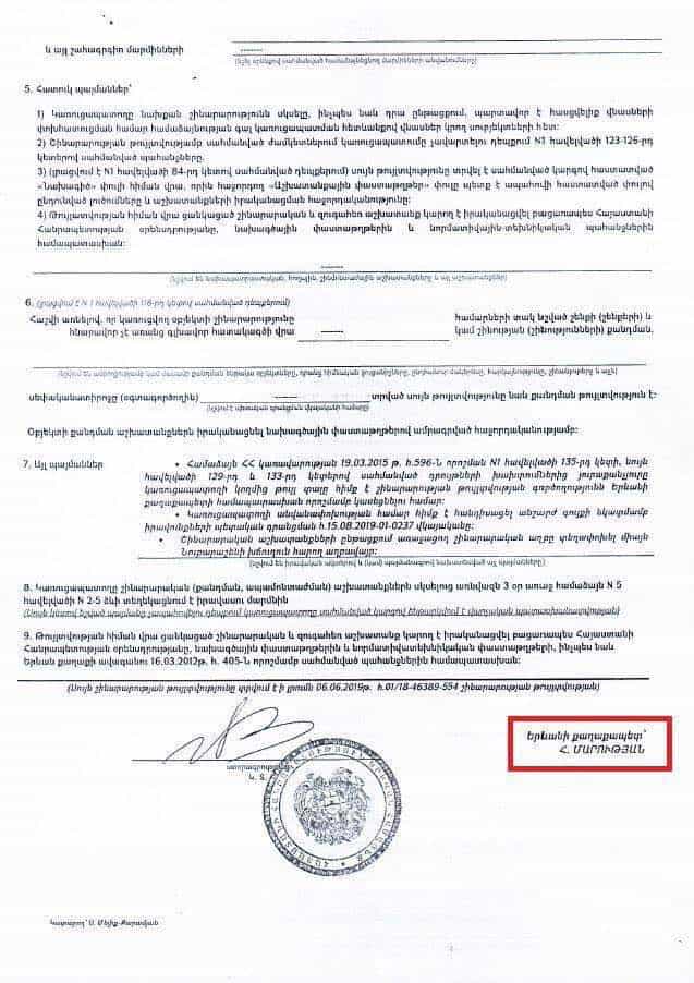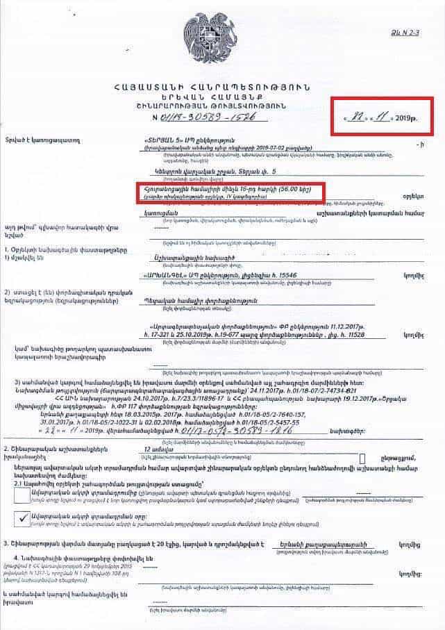 Պարզվում է՝ կախարդական փայտիկը «կարգին» քաղաքապետը գտելա. նոյեմբերի 22-ին թույլտվություն է տվել Տերյան 5-ի շենքի 11-րդ հարկի վրա ևս 5 հարկ՝ ընդհանուր 16 հարկ կառուցելու համար (տես նկար 1 և 2) ու 5 օր հետո արդեն կառուցված են լինում այդ հարկերը (տես նկար 3 և 4)։