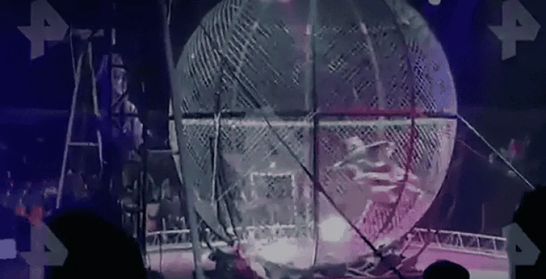 Տեսանյութում երևում է, որ կրկեսի դերասանը հնարքի ժամանակ մոտոցիկլից ընկնում է։