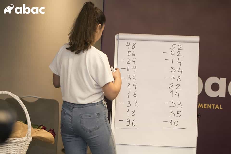 Երբ 4-5 տարեկան երեխային ասում ես 2 խնձորին գումարած 2 խնձոր, նա կարողանում է պատկերացնել՝ խոսքն ինչի մասին է, մտովի տեսնում է խնձորները, հաշվում մատիկներով, բայց երբ ասում ես՝ 5+7, մատները վերջանում են, պատկերը սահմանափակվում է, նա թիվը որպես միավոր չի ընկալում ու չի կարողանում այդ գործողությունները կատարել: Աբակով աշխատելիս մենք թվերը վերարտադրում ենք հաշվիչի վրա, երեխան լսում է ինչ-որ թիվ ու արդեն հստակ պատկեր է ունենում, թվերը լսում է, ընթացիկ պատասխանների վրա չի կենտրոնանում, թվին գումարում է ևս մեկ թիվ, այսինքն՝ պատկերին պատկեր է ավելանում, պակասում, ավելանում և վերջում արդեն պատկերն է վերարտադրվում որպես արդյունք: