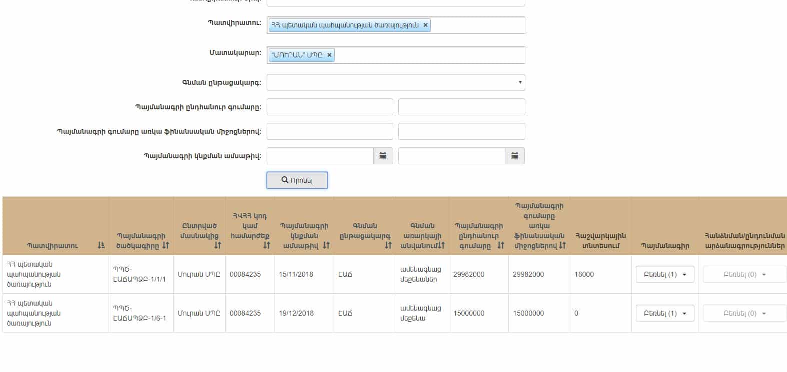 Կարգի համաձայն՝ պետական գնումների վերաբերյալ փաստաթղթերն արխիվացվում են 3 տարի հետո, և պայմանագիրը գտնելու համար այն կարող են փնտրել Պետական գնումների էլեկտրոնային համակարգում։