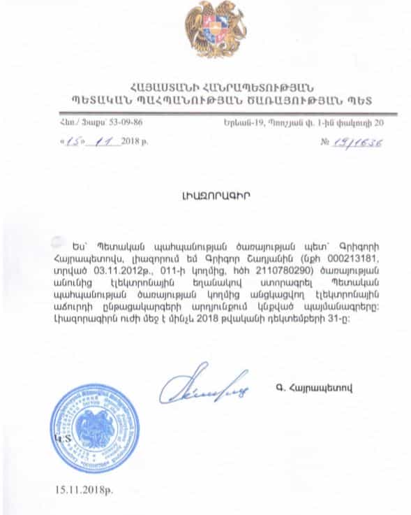 «Կարևոր նորություն ՊՊԾ արխիվից. «վարչապետի դստեր ավտոմեքենան» գնելու պայմանագիրը կնքվել է 2018 թվականի ապրիլի 6-ին, երբ Մարիամ Փաշինյանը պոտենցիալ բանտարկյալի դուստր էր, ոչ թե վարչապետի: