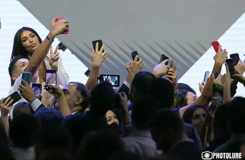 Լուսանկարում հեռուստատեսային դեմք Քիմ Քարդաշյանը սելֆի է անում երկրպագուների հետ WCIT 2019 համաժողովի ընթացքում։