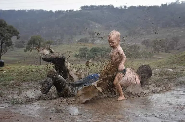 Համացանցում լուսանկարներ են տարածվել, որոնցում անձրև տեսած և դրանից երջանկացած Արչի Սաունդերս անունով երկու տարեկան փոքրիկը հոր հետ անձրևի ու դրա հետևանքով գոյացած ցեխի հետ է խաղում: