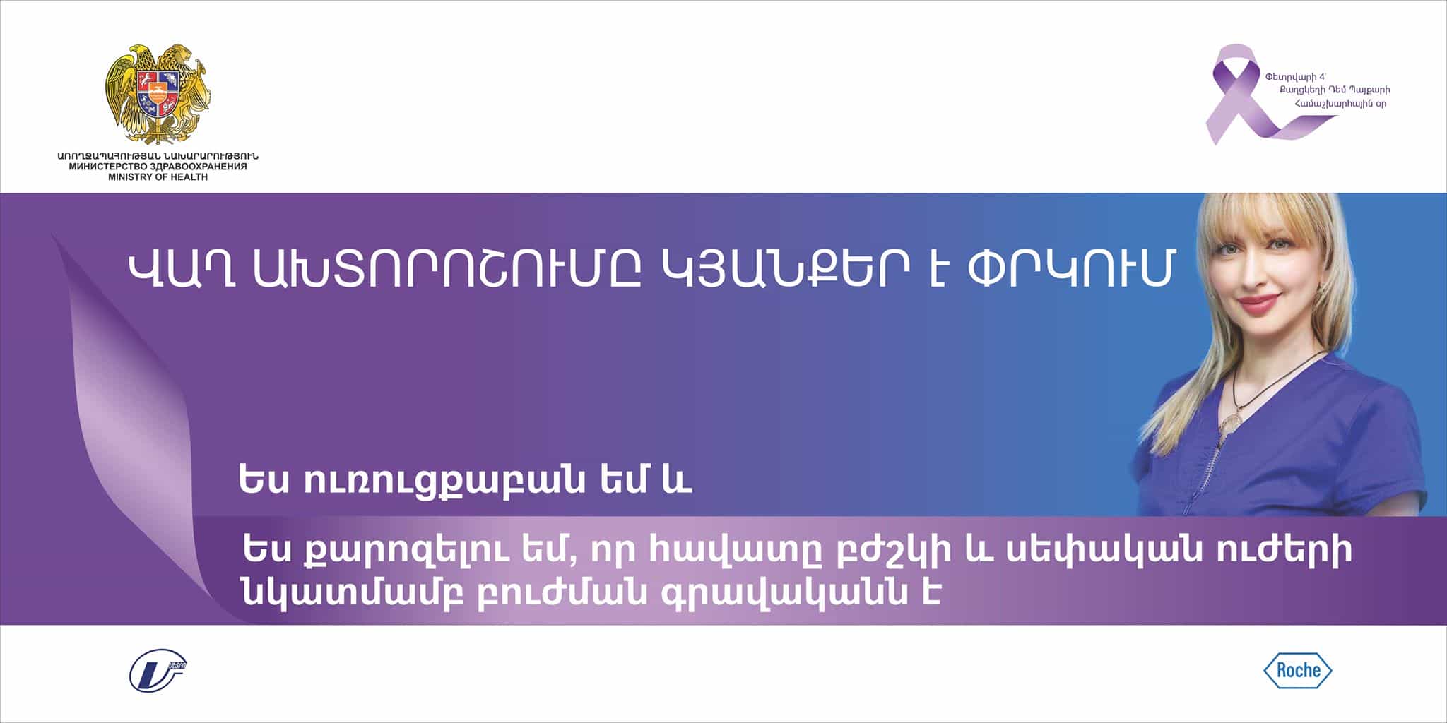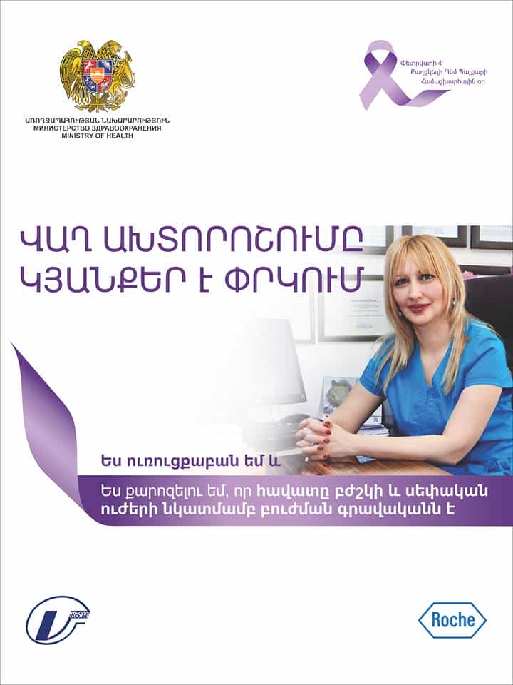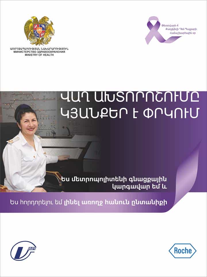 Սրանք մեջբերումներ են Մետրոպոլիտենի Երիտասարդական կայարանում բացված ցուցահանդեսից, որը նպատակ ունի է Քաղցկեղի դեմ պայքարի միջազգային օրվա առիթով մարդկանց հիշեցնելու քաղցկեղի վաղ ախտորոշման նշանակությունը. «Ամեն տարի փետրվարի 4-ին քաղցկեղի դեմ պայքարի միջոցառումներին սովորաբար մասնակցում են բժիշկներն ու բուժաշխատողները, սակայն այս տարի քաղցկեղի դեմ պայքարում որոշեցինք ընդգրել տարբեր բնագավառների մասնագետներին, որպեսզի միահամուռ ուժերով պայքարենք այս բարդ հիվանդության դեմ: Տարբեր մասնագիտութունների ներկայացուցիչների ներառելով՝ մենք բոլոր ուղերձներում կարմիր թելով տանում ենք այն գիծը, որ վաղ ախշտորոշումը մեծաթիվ կյանքեր է փրկում: Եթե հիվանդությունը ի հայտ է եկել՝ չի նշանակում, որ ամեն ինչ վերջացած է: Շատ հիվանդներ բացարձակ առողջանում են և ապրում են սովորական կյանքով»,- ասում է միջոցառման նախաձեռնող ՀՀ ԱՆ Ուռուցքաբանության գծով խորհրդատու Հայկուհի Գյոկչյանը՝ նշելով, որ ցուցահանդեսը կազմակերպվել է Առողջապահության նախարարության ու Մետրոպոլիտենի համագործակցության արդյունքում: