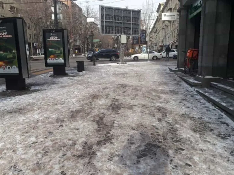 Սա Երեւանի կենտրոնն է, որտեղ մարդիկ քայլում են այնպես, որ հանկարծ կոտրվածք չստանան, իսկ պատկերացնում եք ինչ վիճակ է մյուս, ծայրամասային հատվածներում։