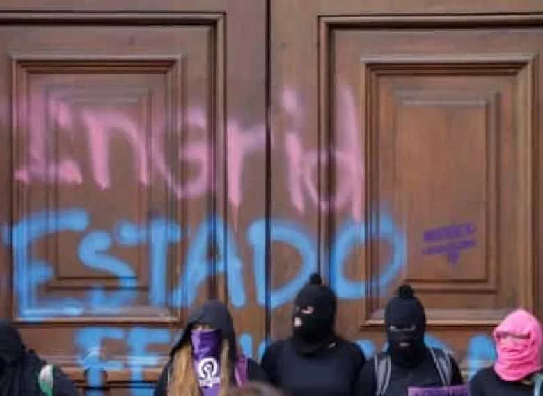 Մեքսիկայում 25-ամյա կնոջ դաժան սպանությունից հետո բռնկված ցույցերի մասնակիցները ներկով գրել են նախագահական պալատի դռների վրա, հայտնում է Reuters-ը: