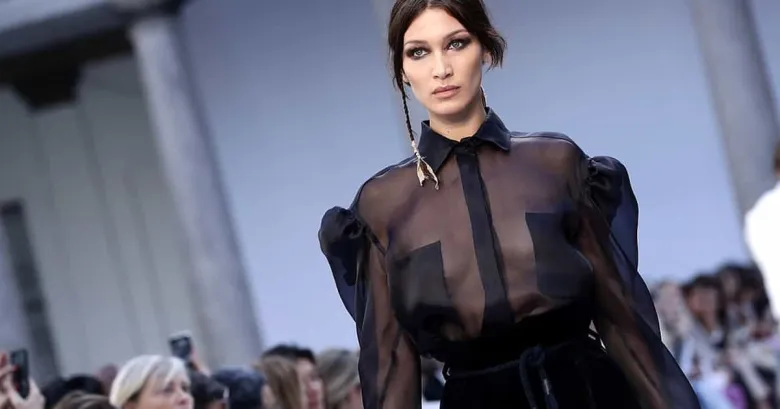 23-ամյա Հադիդը Միլանում կազմակերպված Բարձր նորաձեւության շաբաթին հանրության առջեւ հայտնվել է օրգանզայից կարված սեւ վերնաշապիկով՝ գրպաններով եւ ծավալուն թեւքերով, որի տակ երեւում է նրա կուրծքը: