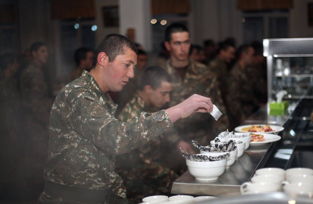 Զինվորական ճաշարանում տեղադրվել են ժամանակակից խոհանոցային սարքավորումներ, ներդրվել է հոսքագծային սպասարկման տարբերակը:
