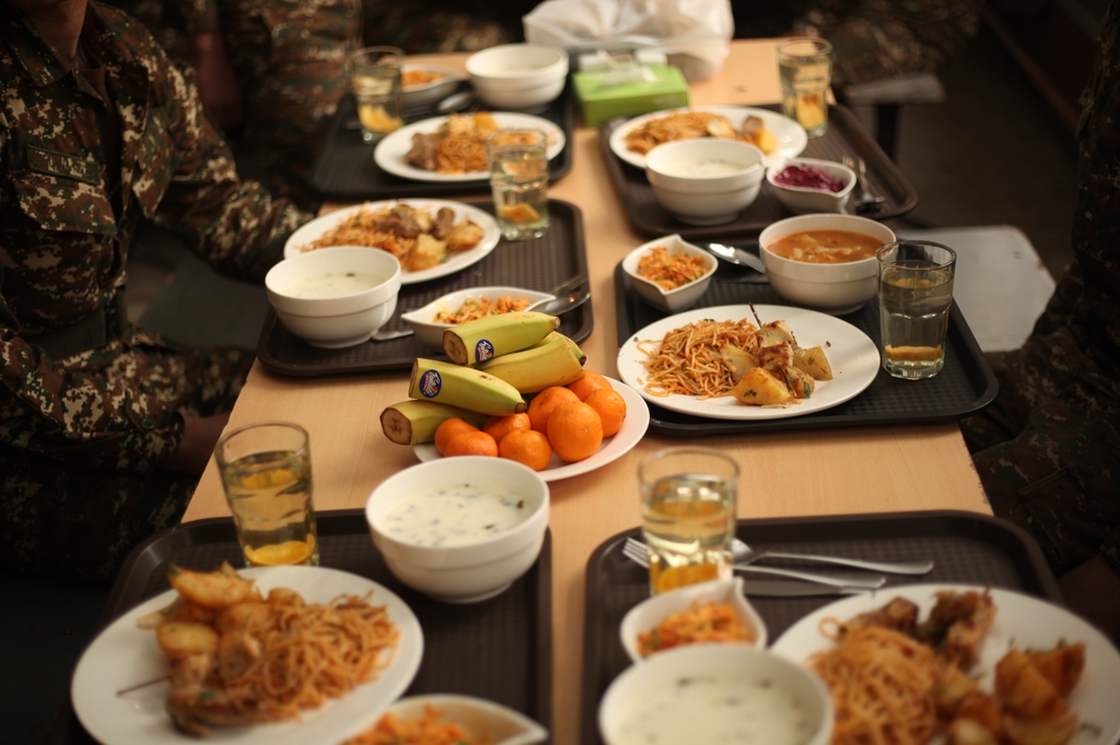 Մատակարարող ընկերությունը զինծառայողներին առաջարկում է բազմազան ճաշատեսակներ, աղցաններ, միրգ, քաղցրավենիք և հյութեր։